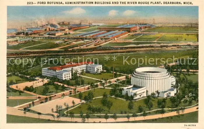 Dearborn_Michigan Ford Rotunda Administration Building and the River Rouge Plant postalisch nicht gelaufen 1921-1965 Erhaltung siehe scans [WerneD78] WernPID7