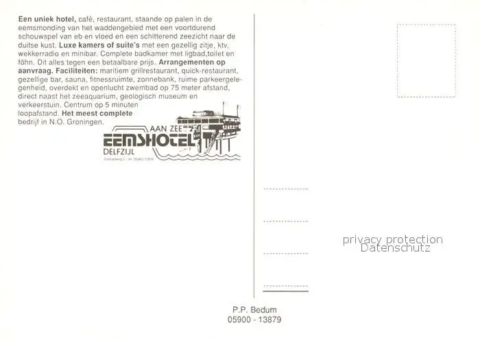 Delfzijl Eemshotel Cafe Restaurant Delfzijl postalisch nicht gelaufen nach 1965 Erhaltung siehe scans [WerneD78] WernPID7