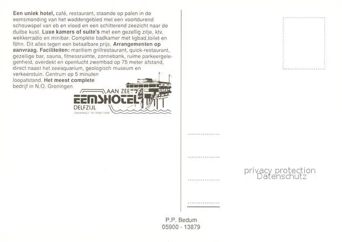 Delfzijl Eemshotel Restaurant Delfzijl postalisch nicht gelaufen nach 1965 Erhaltung siehe scans [FriedD77] Frierer