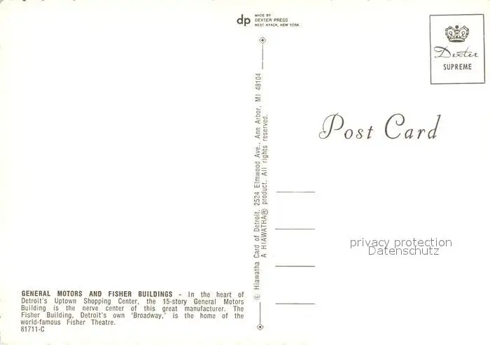 Detroit_Michigan General Motors and Fisher Buildings aerial view postalisch nicht gelaufen nach 1965 Erhaltung siehe scans [FriedD77] Frierer