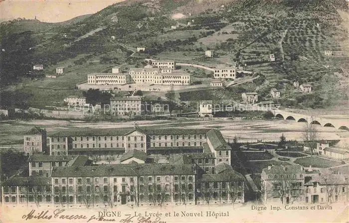 carte postale Digne -les-Bains 04 Alpes-de-Haute-Provence Le Lycee et le Nouvel Hopital postalisch gelaufen Erhaltung siehe scans [WerneD78]