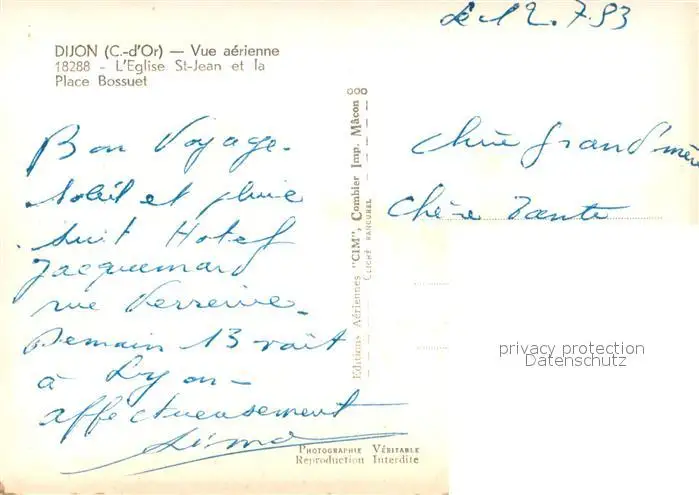 Dijon_21 Vue aerienne Eglise St Jean et la Place Bossuet postalisch nicht gelaufen 1983 Erhaltung siehe scans [WerneD78] WernPID7