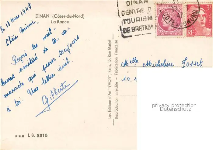Dinan_22 La Rance postalisch gelaufen 1947 Erhaltung siehe scans [WerneD78] WernPID7