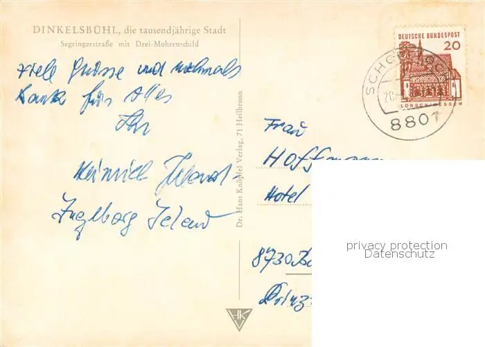 Dinkelsbuehl Segringerstrasse mit Drei Mohren Schild Dinkelsbuehl postalisch gelaufen nach 1965 Erhaltung siehe scans [WerneD78] WernPID7