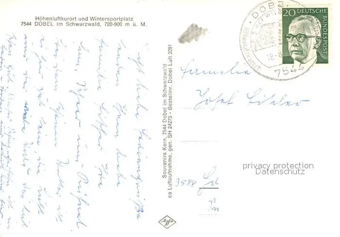 Dobel Schwarzwald Kategorie Alte Ansichtskarten Postkarten bx56943 Dobel_Schwarzwald Fliegeraufnahme Dobel Schwarzwald postalisch gelaufen nach 1965 Erhaltung siehe scans [WerneD78]