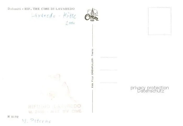 Dolomiti__Dolomiten_IT Rifugio Tre Cime di Lavaredo postalisch nicht gelaufen nach 1965 Erhaltung siehe scans [WerneD78] WernPID7