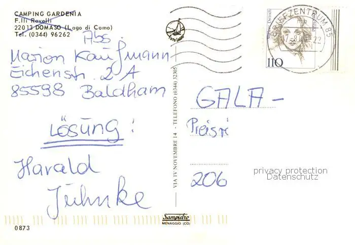 Domaso_Lago_di_Como_IT Camping Gardenia Strand Bootshafen Surfer postalisch gelaufen 2000 Erhaltung siehe scans [WerneD78] WernPID7