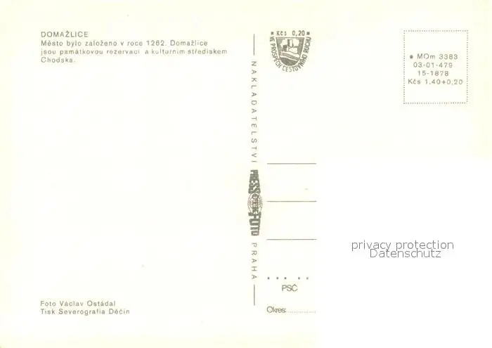 Domazlice_CZ Mesto bylo zalozeno v roce Domazlice jsou pamatkovou rezervaci a kulturnim strediskem Chodska postalisch nicht gelaufen nach 1965 Erhaltung siehe scans [FriedD77] Frierer