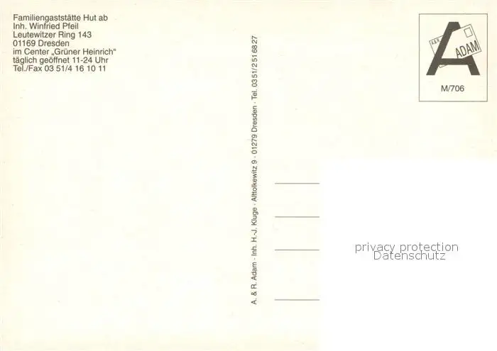 Dresden Familiengaststaette Hut ab Terrasse Gastraeume Dresden postalisch nicht gelaufen nach 1965 Erhaltung siehe scans [WerneD78] WernPID7