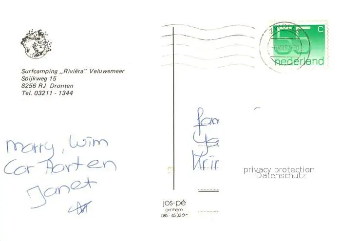 Dronten Surfcamping Riviera Veluwemeer postalisch gelaufen 1987 Erhaltung siehe scans [WerneD78] WernPID7