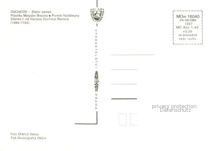 Duchcov_CZ Statni zamek Plastika Matyase Brauna Portret Valdstejna Zdenko I od Vaclava Vavrince Reinera postalisch nicht gelaufen nach 1965 Erhaltung siehe scans [FriedD77] Frierer
