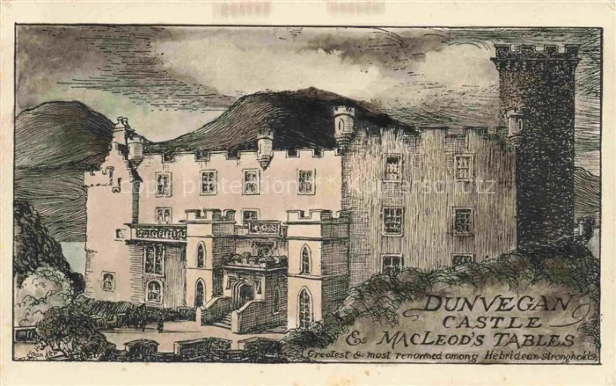 Dunvegan Isle of Skye Hebrids Scotland UK Castle and Mac Leod's Tables Kuenstlerkarte postalisch nicht gelaufen Erhaltung siehe scans [FriedD77] Frie Katcode 11570UKM2M22QR