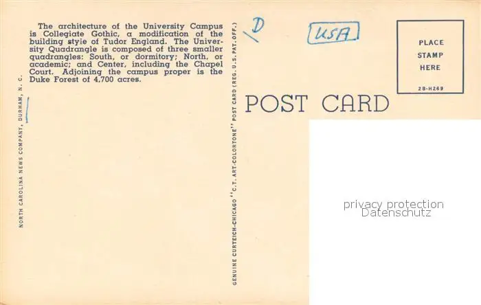 Durham_North_Carolina Aerial View of Duke University postalisch nicht gelaufen nach 1965 Erhaltung siehe scans [WerneD78] WernPID7