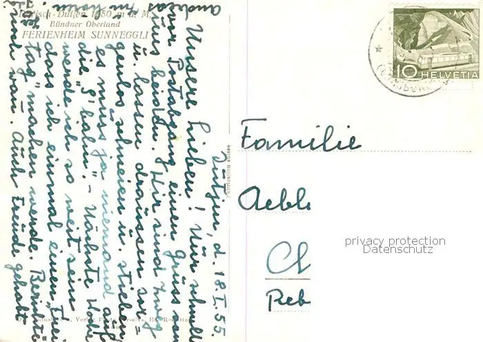 Dutjer_Horn Ferienheim Sunneggli Dutjer Horn postalisch gelaufen 1955 Erhaltung siehe scans [WerneD78] WernPID7