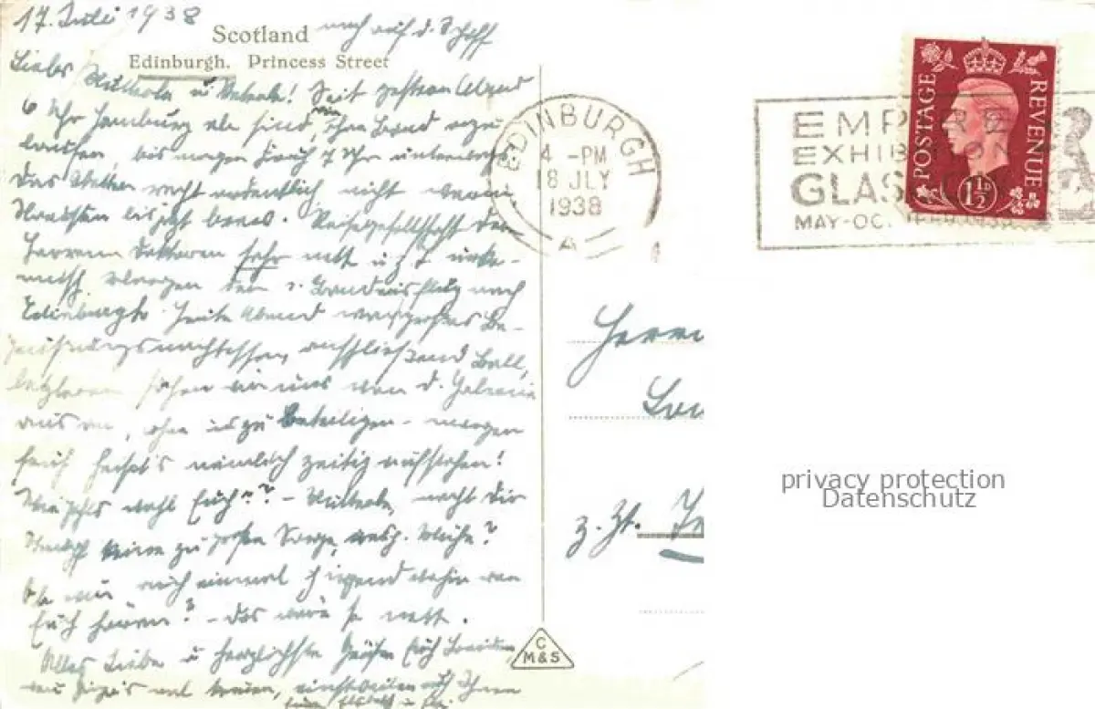 old postcard EDINBURGH SCOTLAND UK Princess Street postalisch gelaufen Erhaltung siehe scans [WerneD78]