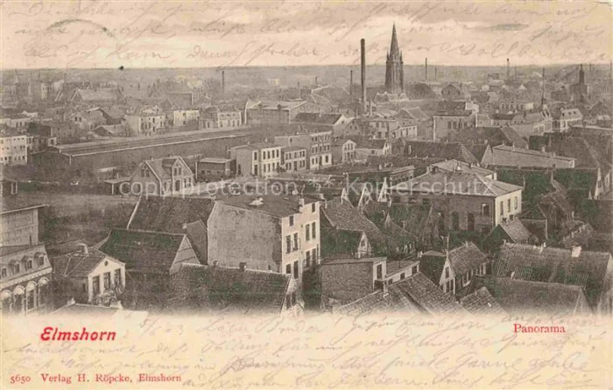 alte Postkarte ELMSHORN Pinneberg Schleswig-Holstein Stadtpanorama postalisch gelaufen Erhaltung siehe scans [FriedD77]
