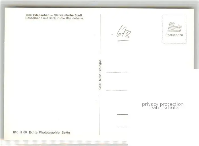 Edenkoben Sesselbahn mit Blick in die Rheinebene Edenkoben postalisch nicht gelaufen 1921-1965 Erhaltung siehe scans [WerneD78] WernPID7