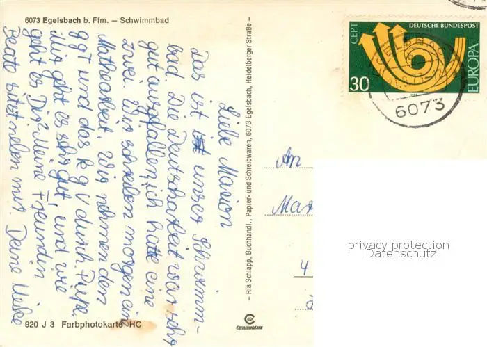 Egelsbach Schwimmbad Egelsbach postalisch gelaufen 1973 Erhaltung siehe scans [LiesaD40] LiesID40