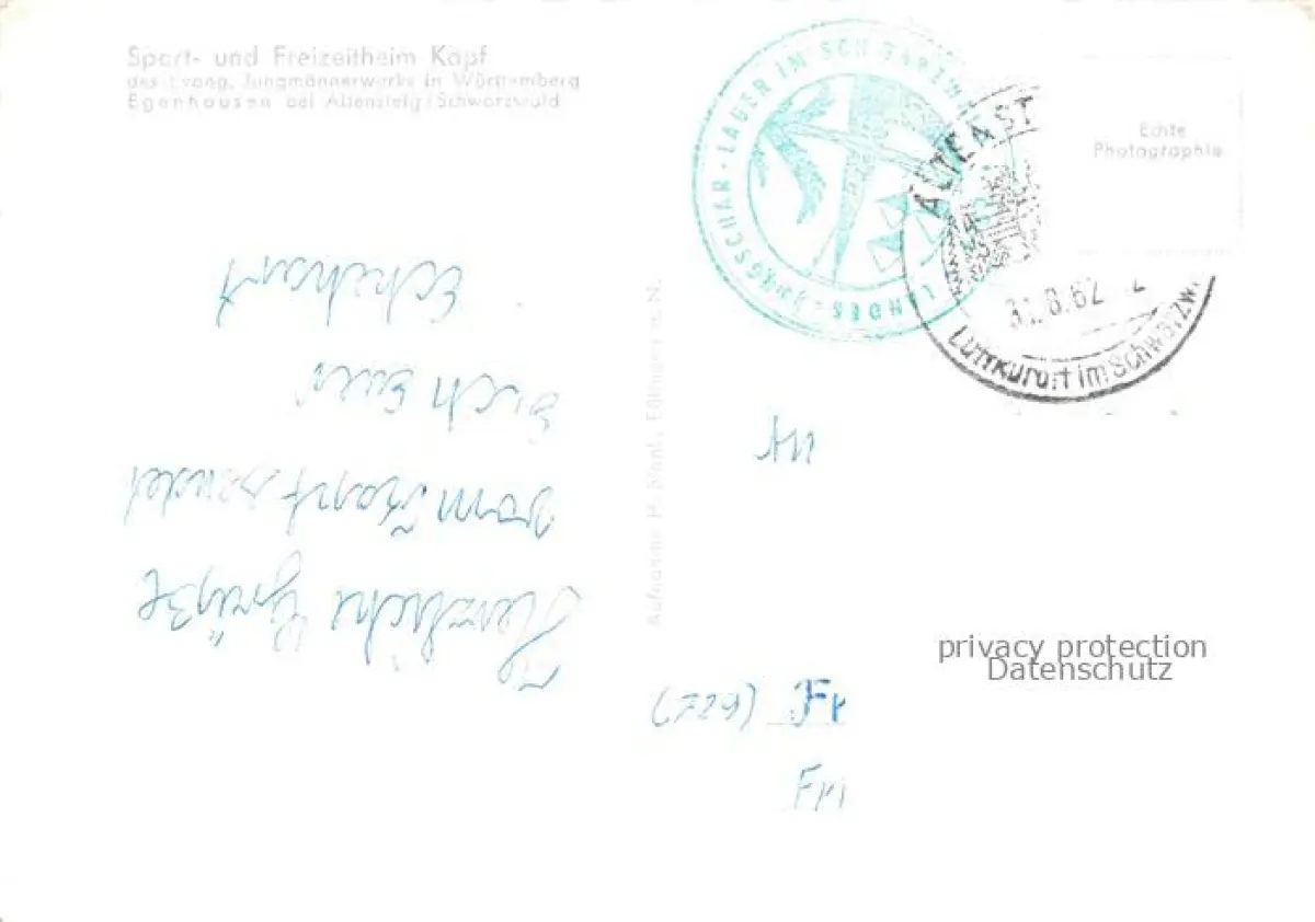 alte Postkarte Egenhausen Schwarzwald Altensteig Calw BW Sport und Freizeitheim Kapf postalisch gelaufen Erhaltung siehe scans [WerneD78]