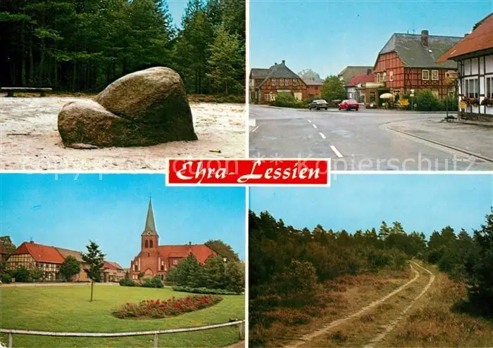 AK / Ansichtskarte Ehra Lessien Findling Kirche Heide Ehra Lessien