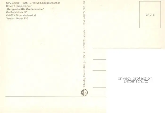 Ehrenfriedersdorf_Erzgebirge Berggasttaette Greifensteine Ehrenfriedersdorf postalisch nicht gelaufen nach 1965 Erhaltung siehe scans [FriedD77] Frierer