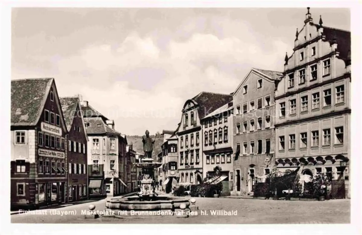 Eichstaett Oberbayern Marktplatz mit Brunnendenkmal des hl. Willibald Altstadt postalisch nicht gelaufen Erhaltung siehe scans [FriedD77] Frie Katcode 11110009176123