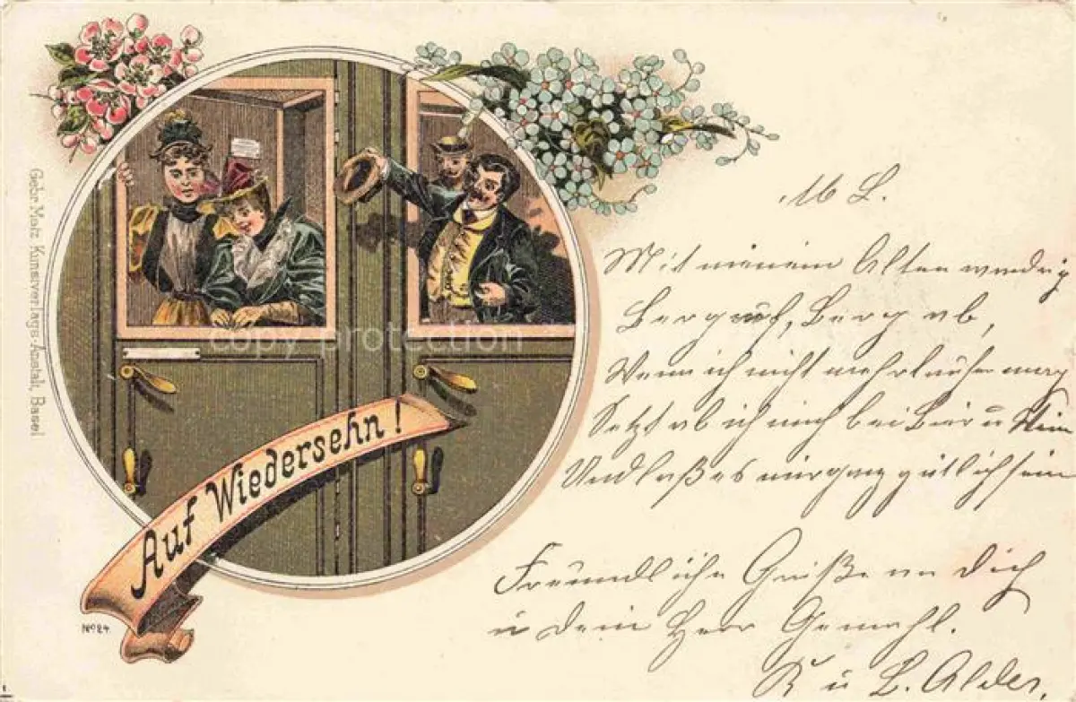 alte Postkarte Eisenbahn Schweiz CH Auf Wiedersehen Litho postalisch gelaufen Erhaltung siehe scans [IrynaD87]