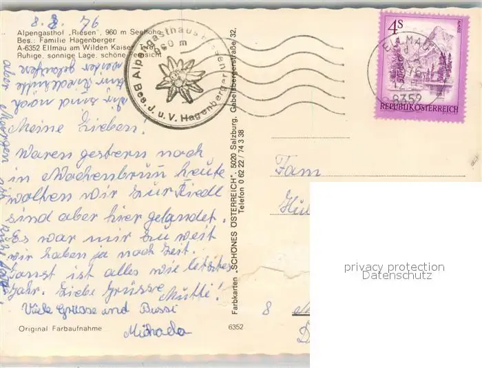 Ellmau_Tirol Alpengasthof Riesen Ellmau Tirol postalisch gelaufen 1976 Erhaltung siehe scans [LiesaD40] LiesID40
