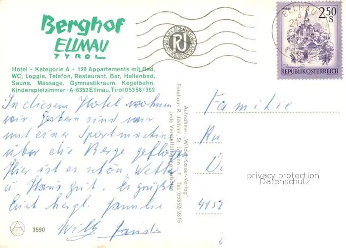 Ellmau_Tirol Berghof Ellmau Ellmau Tirol postalisch gelaufen nach 1965 Erhaltung siehe scans [WerneD78] WernPID7