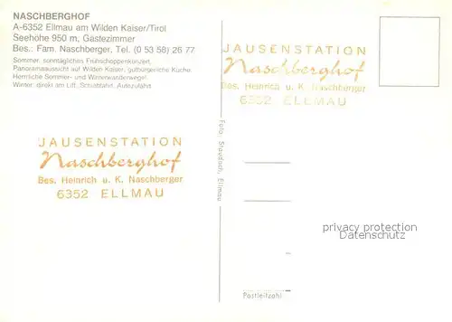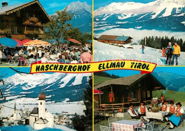 Ellmau_Tirol Jausenstation Naschberghof Motiv mit Kirche Wintersportplatz Alpen Ellmau Tirol postalisch nicht gelaufen nach 1965 Erhaltung siehe scans [FriedD77] Frierer