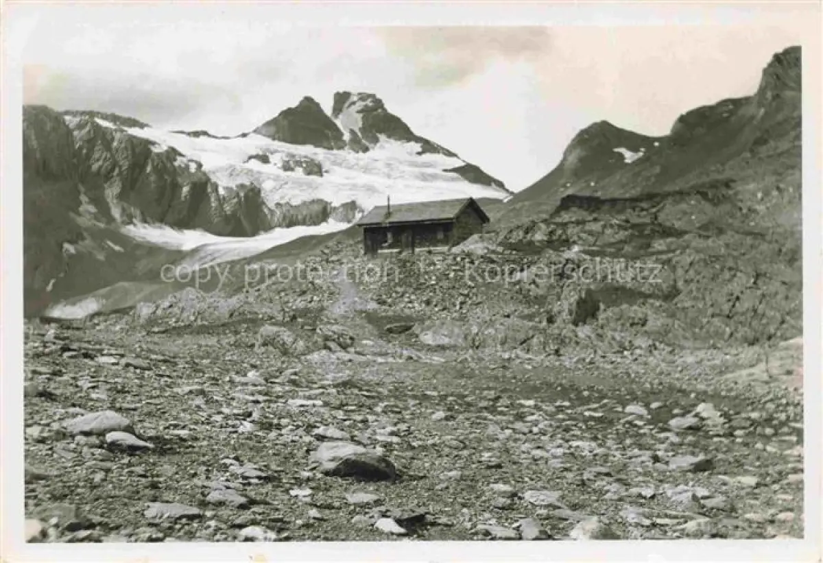 AK / Ansichtskarte Elm GL Panixerpass-Huette mit Hausstock und Meergletscher Alpen