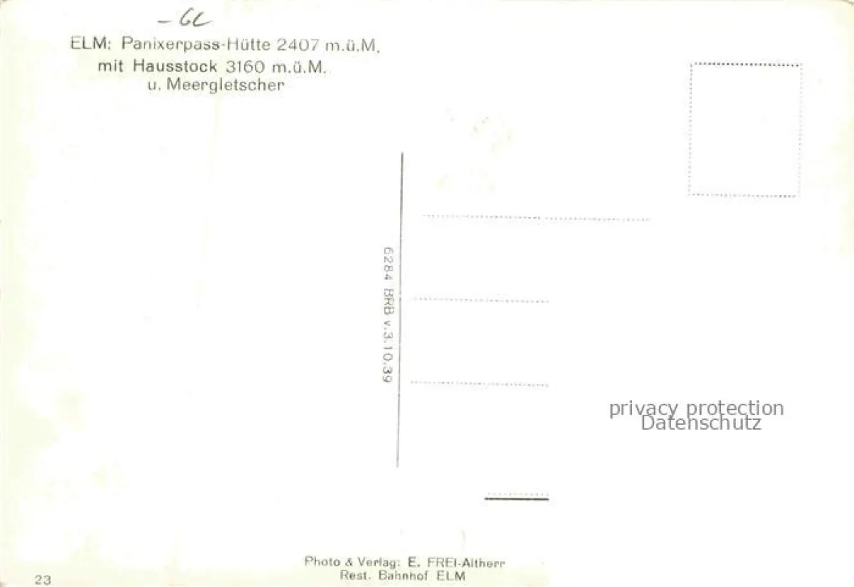 14118434 Elm GL Panixerpass-Huette mit Hausstock und Meergletscher Alpen postalisch nicht gelaufen Erhaltung siehe scans [FriedD77] Frie Katcode 11470090300866