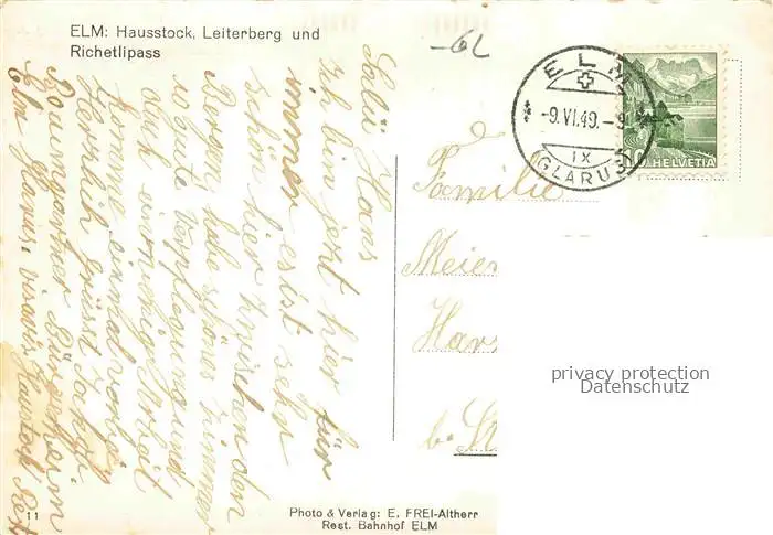 alte Postkarte Elm GL Panorama Blick ins Tal Hausstock Leiterberg und Richetlipass postalisch gelaufen Erhaltung siehe scans [FriedD77]