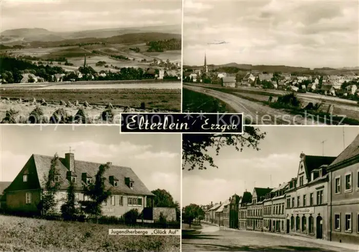 AK / Ansichtskarte Elterlein Panorama Jugendherberge Glueck Auf Strassenpartie Elterlein