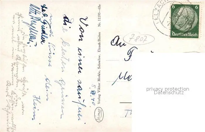 Elzach Ortsansicht mit Kirche Elzach postalisch gelaufen 1940 Erhaltung siehe scans [FriedD77] Frierer