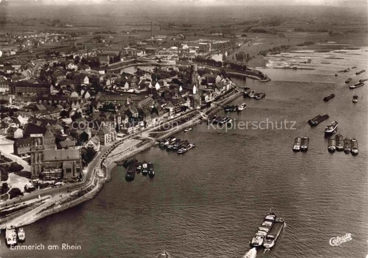 Emmerich Rhein NRW Fliegeraufnahme postalisch gelaufen Erhaltung siehe scans [FriedD77] alte Postkarte Frie Katcode 11110005154008