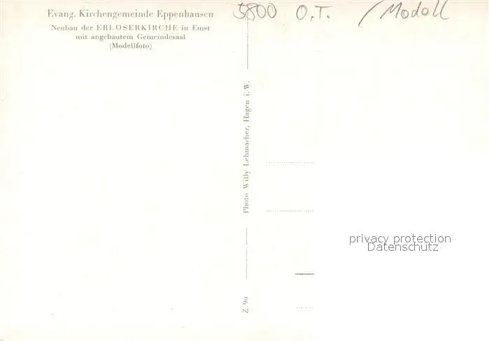 Emst Modell d. evgl. Erloeserkirche Emst postalisch nicht gelaufen nach 1965 Erhaltung siehe scans [LiesaD40] LiesID40