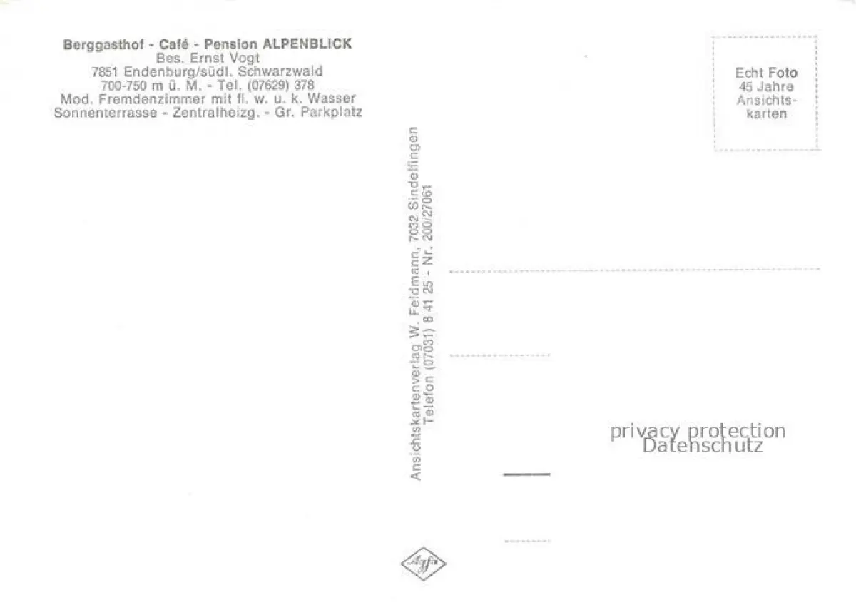 Endenburg Steinen BW Berggasthof Alpenblick Panorama postalisch nicht gelaufen Erhaltung siehe scans [WerneD78] Wern Katcode 11110008336084