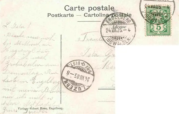 Engelberg__OW Besteigung des Titlis Partie an der Roten postalisch gelaufen 1905 Erhaltung siehe scans [FriedD77] Frierer