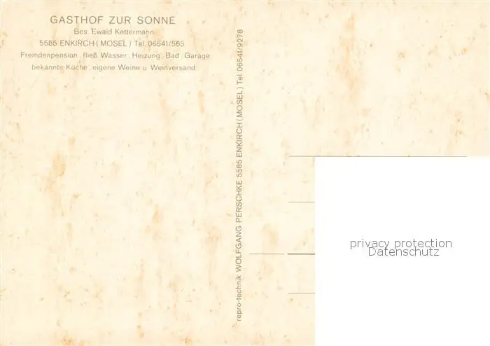 Enkirch_Mosel Gasthof zur Sonne Enkirch Mosel postalisch nicht gelaufen nach 1965 Erhaltung siehe scans [WerneD78] WernPID7