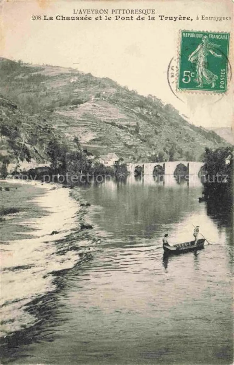 carte postale Entraygues-la-Jolie Entraygues-sur-Truyere RODEZ 12 Aveyron La Chaussee et le Pont de la Truyere postalisch gelaufen Erhaltung siehe scans [WerneD78]