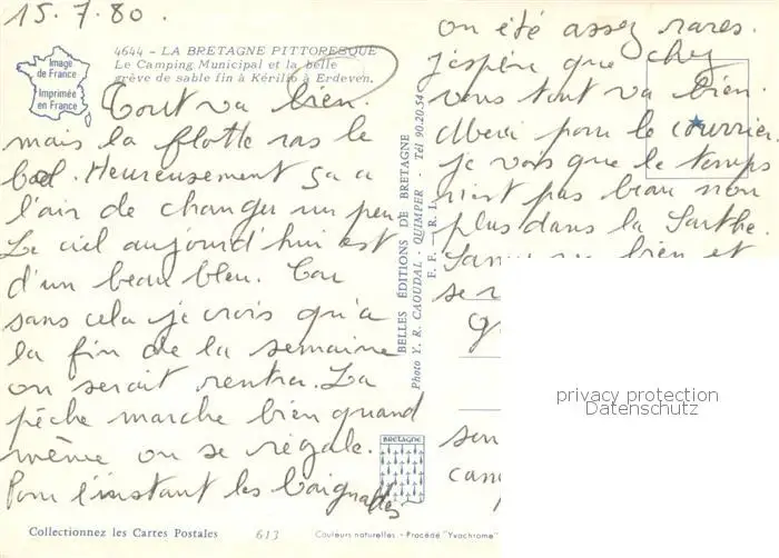 Erdeven_56_Morbihan Le Camping Municipal et la belle greve de sable fin a Kerilio postalisch nicht gelaufen 1980 Erhaltung siehe scans [WerneD78] WernPID7