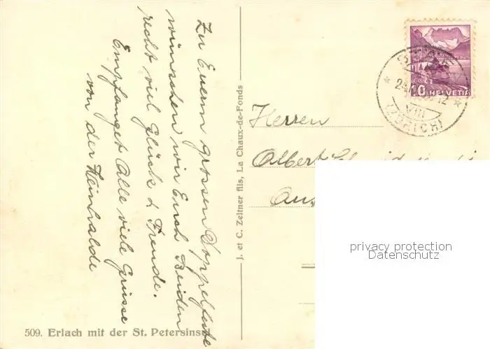 Erlach_Bielersee_BE Panorama mit St Peterinsel Kuenstlerkarte postalisch gelaufen 1921-1965 Erhaltung siehe scans [WerneD78] WernPID7