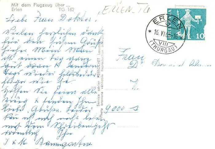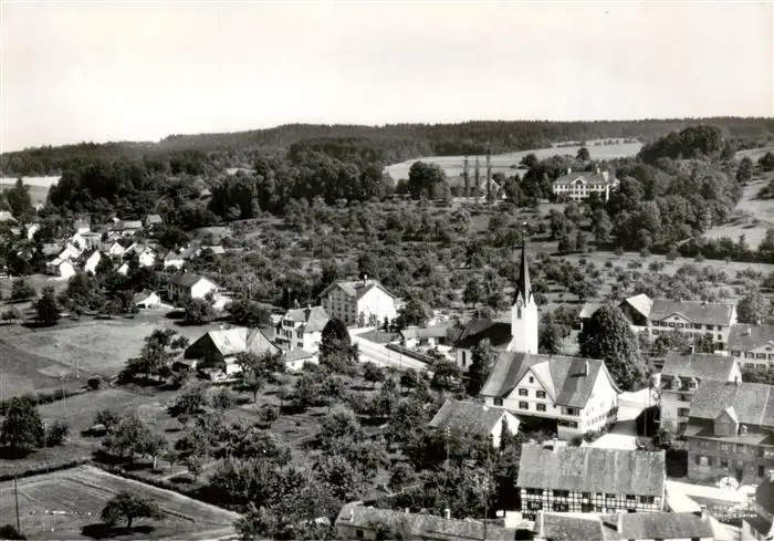 Erlen_TG Ortsansicht mit Kirche postalisch gelaufen 1965 Fliegeraufnahme Erhaltung siehe scans [FriedD77] Fliegeraufnahme Frierer