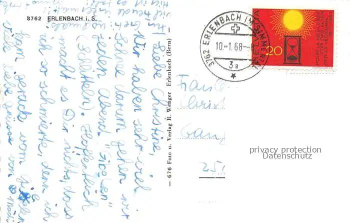 14061598 Erlenbach Simmental BE Winterpanorama postalisch gelaufen Erhaltung siehe scans [FriedD77] alte Postkarte Frie Katcode 11470060205548