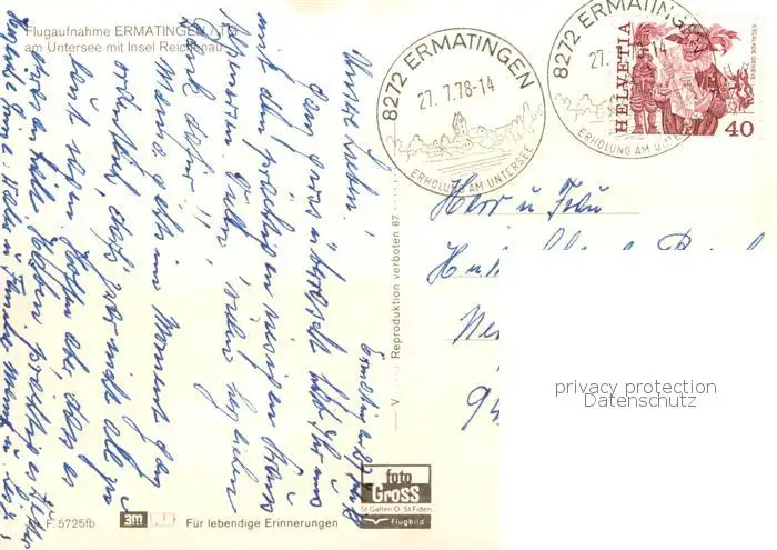 Ermatingen_Untersee Fliegeraufnahme mit Insel Reichenau Ermatingen Untersee postalisch gelaufen 1978 Erhaltung siehe scans [WerneD78] WernPID7