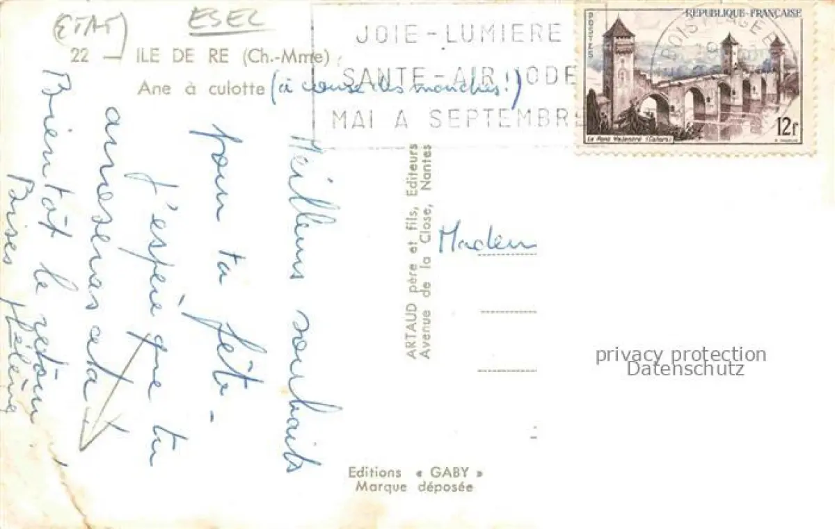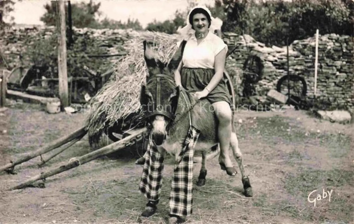 alte Postkarte Esel Donkey Ane Burro Asno Asino-- Ile de Re Ane a culotte postalisch gelaufen Erhaltung siehe scans [IrynaD87]