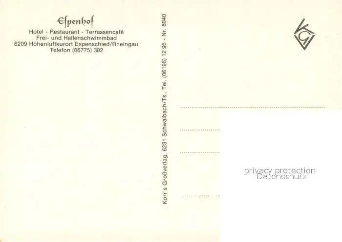 Espenschied Hotel Restaurant Terrassencafe Espenhof Hallenbad Speisesaal Gaststube Espenschied postalisch nicht gelaufen nach 1965 Erhaltung siehe scans [WerneD78] WernPID7