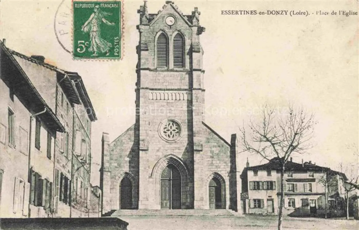 carte postale Essertines-en-Donzy MONTBRISON 42 Loire Place de l'Eglise postalisch gelaufen Erhaltung siehe scans [FriedD77]
