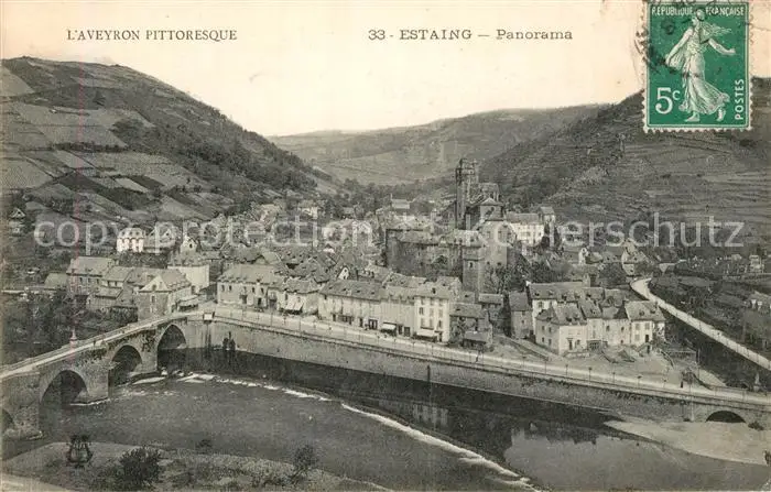 Estaing_Aveyron Panorama Estaing_Aveyron postalisch gelaufen bis 1920 Erhaltung siehe scans [WerneD78] WernPID7